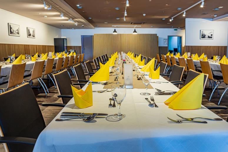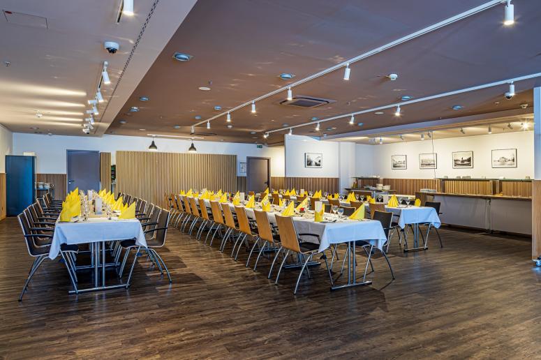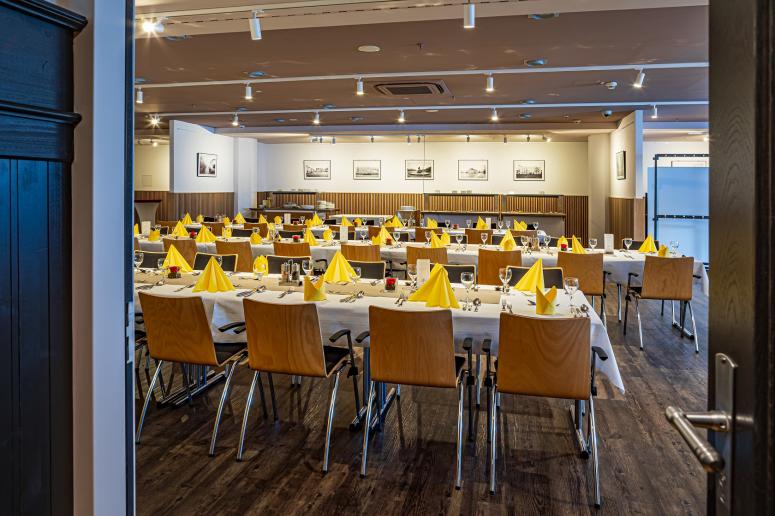 This dining room has fantastic view of Coburg's marketplace. The adjoining bar provides an excellent space for tasting events of any kind. The guests can reach the celebration room via staircase or elevator.
